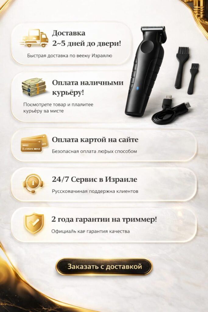 Обеспечивает ровную и аккуратную стрижку, идеально подходит для контуров, бороды и коротких причёсок.